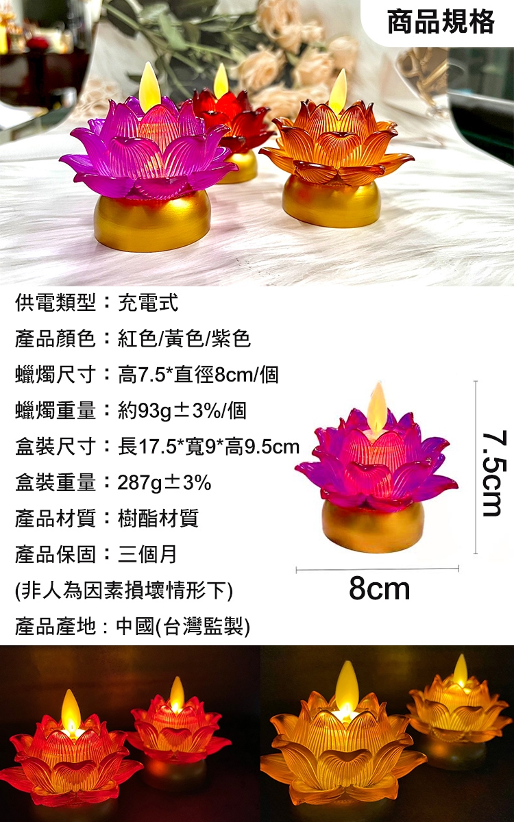產品名稱:7日蓮花祈願心燭充電款2入組