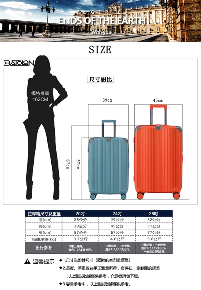 ※ 請勿用拉桿將箱子提起,提起箱子時請用上方或側面的把手;拉桿適用於配合輪子拖行時使用。