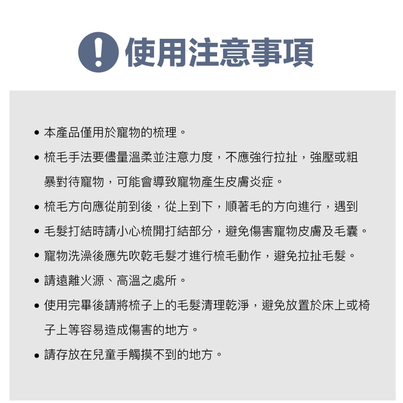 本產品僅用於寵物的梳理。