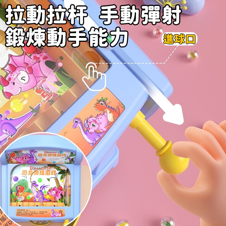 趣味恐龍彈珠,歡樂不停。拉動拉杆,手動彈射,鍛煉動手能力。
