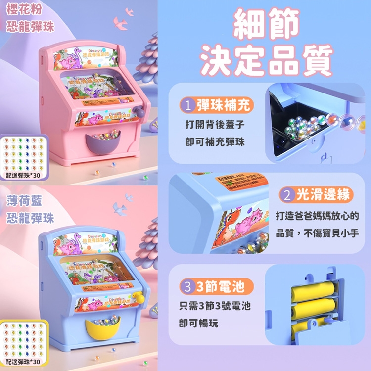 馬卡龍配色,用心做好每個細節。細節決定品質,彈珠補充、光滑邊緣、3節電池。