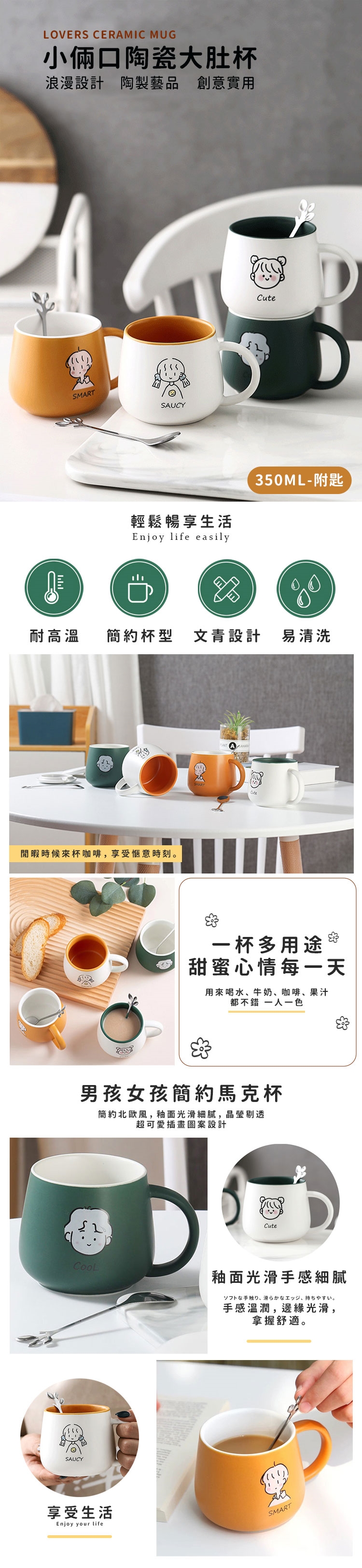 品名:【OMORY】小倆口大肚杯350ML附匙
