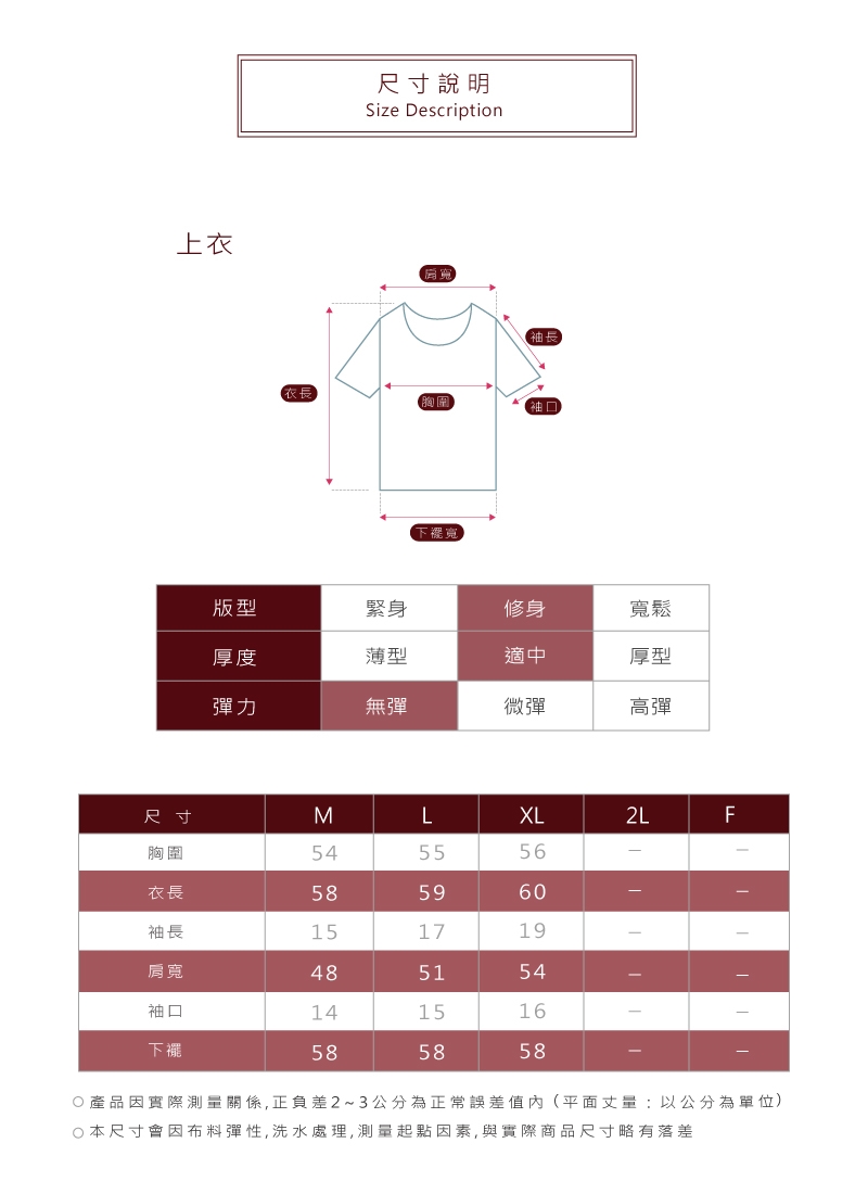 本尺寸會因布料彈性、洗水處裡、測量起點因素與實際尺寸略有落差