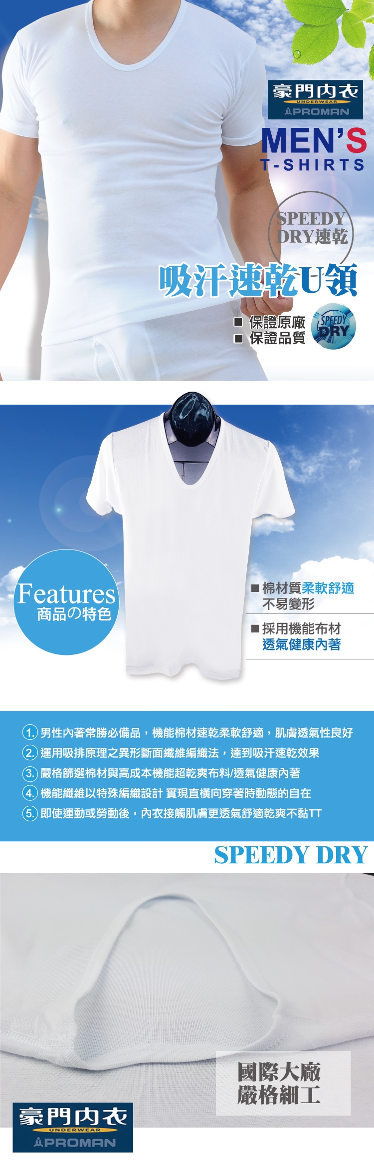 PROMAN豪門 舒肌棉男U領袖內衣M1135