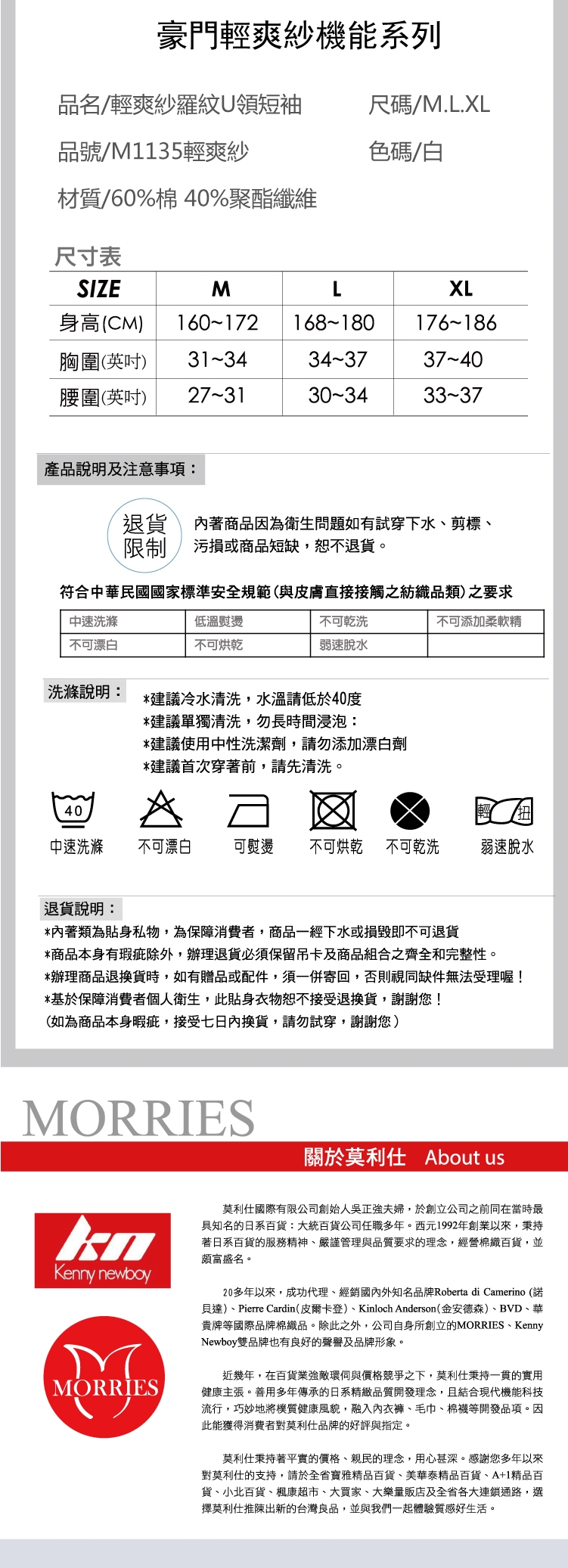 請勿使用漂白劑、螢光增白劑及衣物柔軟劑,以免破壞布料選購說明:基於保障消費者個人衛生安全,此貼身衣物恕不接受試穿、退貨,商品一經下水與損毀即不可退貨,選購時請見諒!除本商品本身有瑕疵外,辦理退貨必須保留吊卡及商品組合之齊全及完整性,否則視同缺件無法受理。無