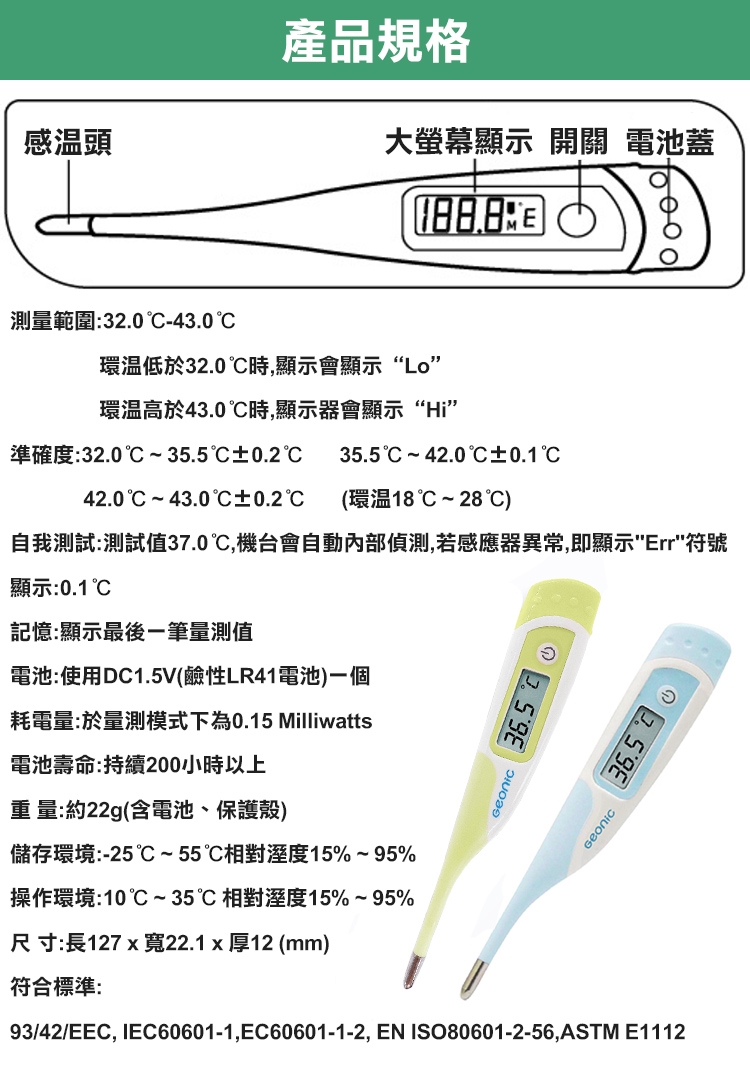 品名:【Geonic】吉歐尼克10秒快速電子體溫計