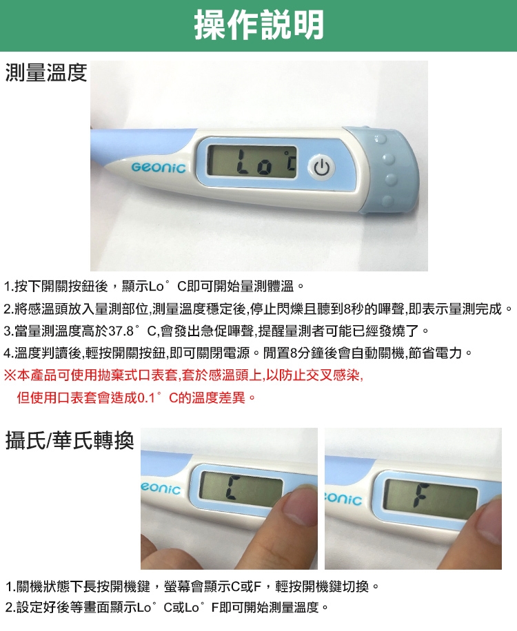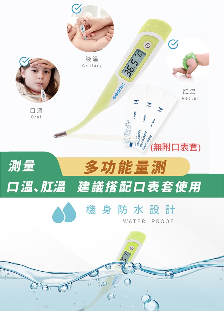 2.測量口溫及肛溫或需重複使用時,建議搭配口裹套使用。