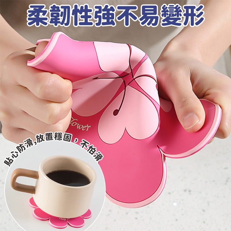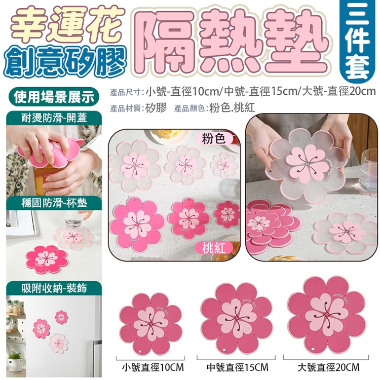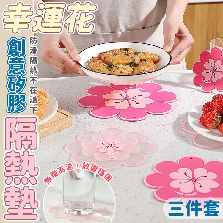 幸運花創意矽膠隔熱墊三件套,趣味創意生活,桌面遠離傷害,更安心