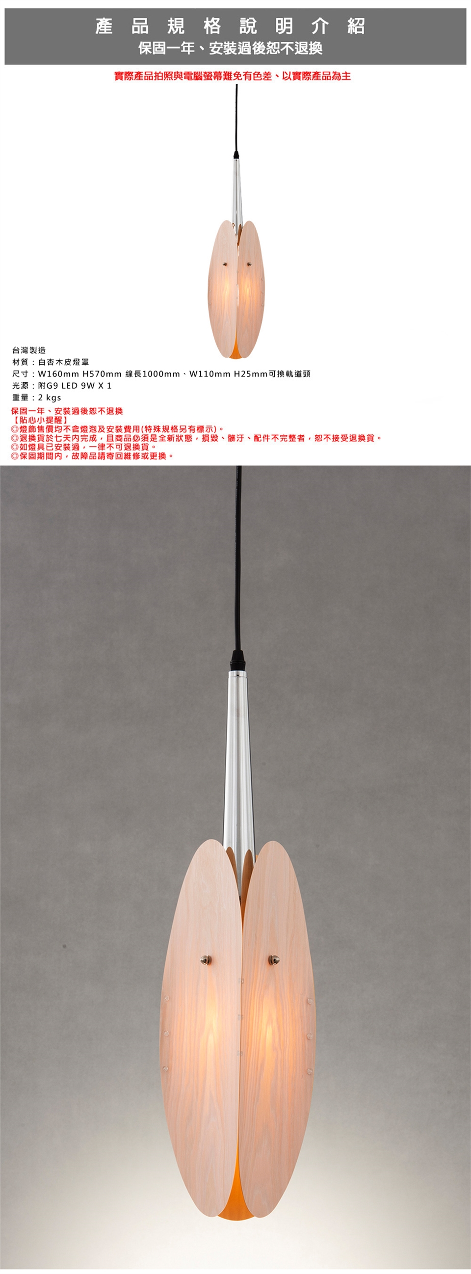 ◎如燈具已安裝過,一律不可退換貨。