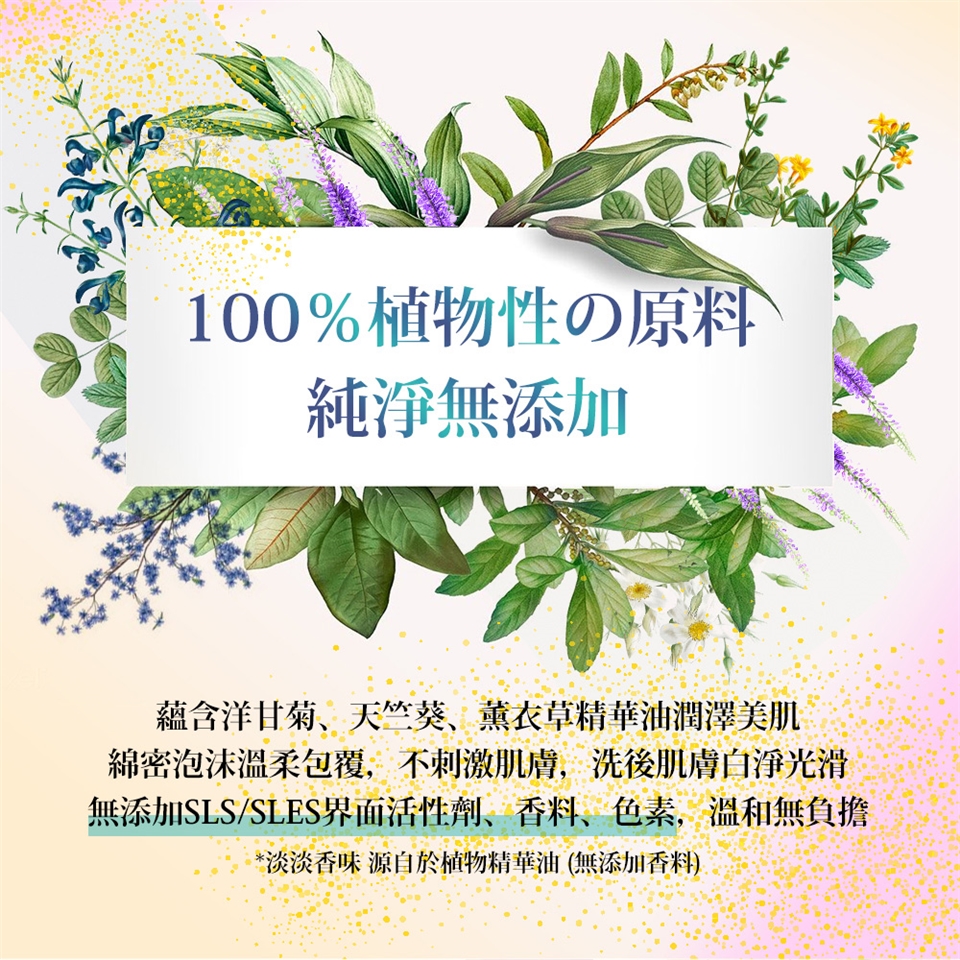 *淡淡香味 源自於植物精華油 (無添加香料)。