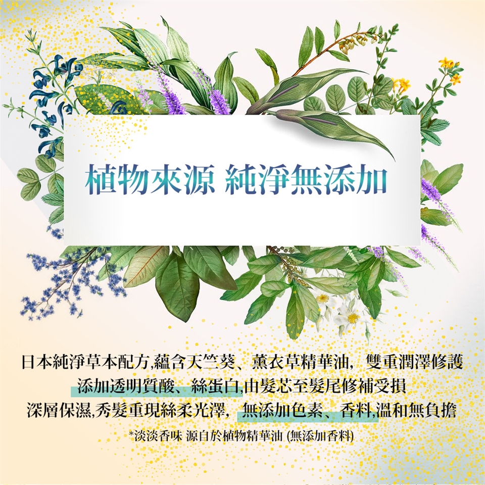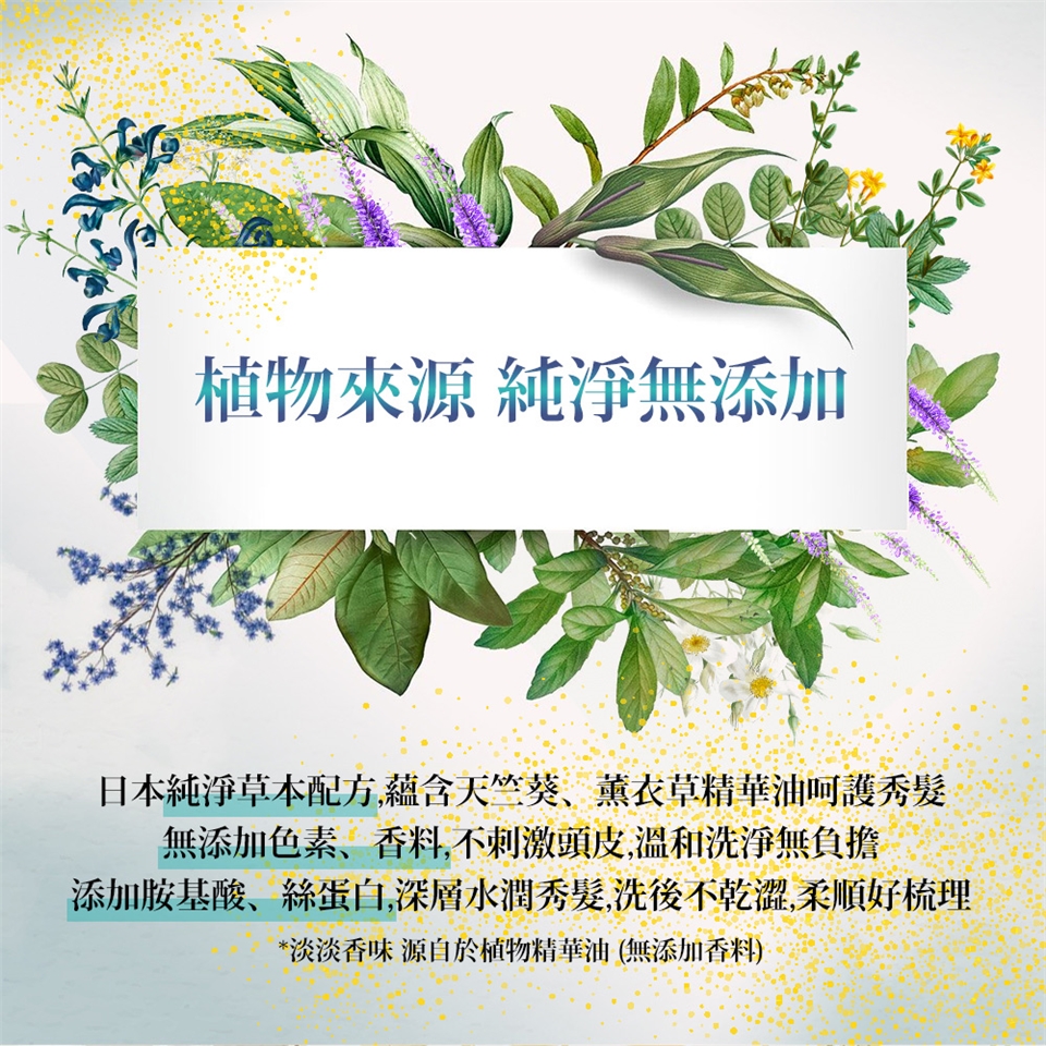 ●日本純淨草本配方,蘊含天竺葵﹑薰衣草精華油呵護秀髮。