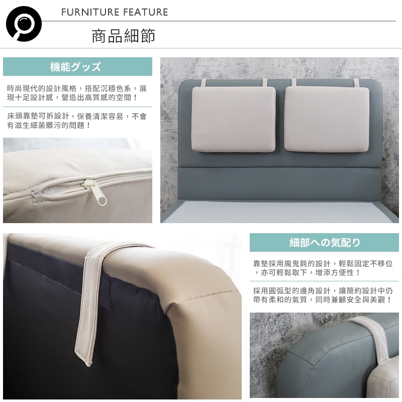 床頭靠墊可拆設計,保養清潔容易,不會有滋生細菌髒污的問題!