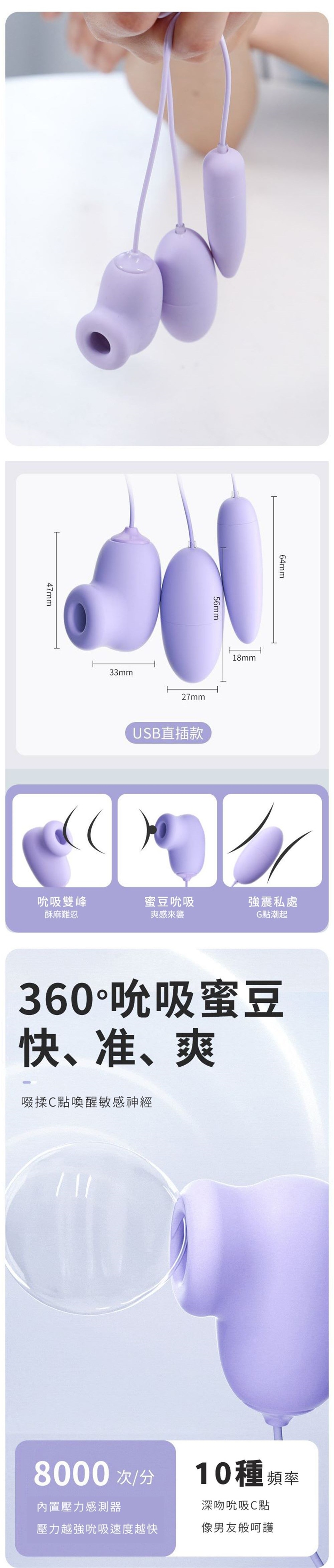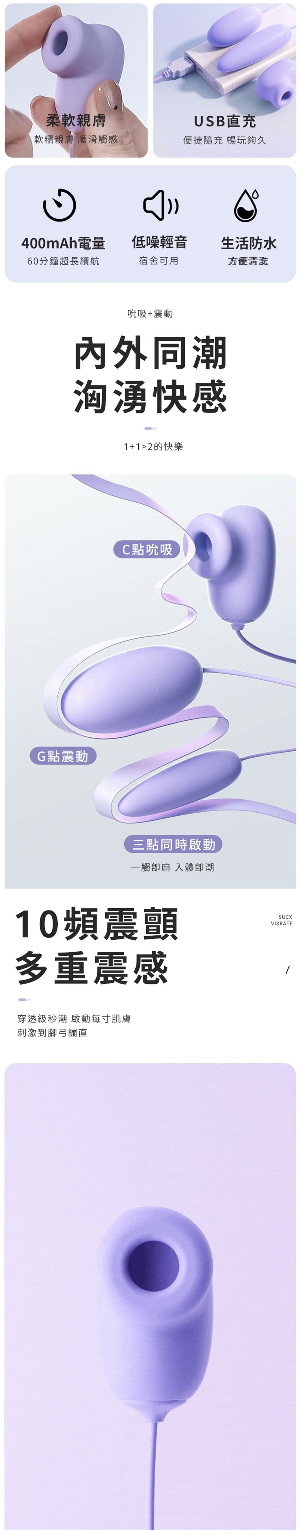 規格:電壓3.7V / 10頻震動 / 10頻吸吮