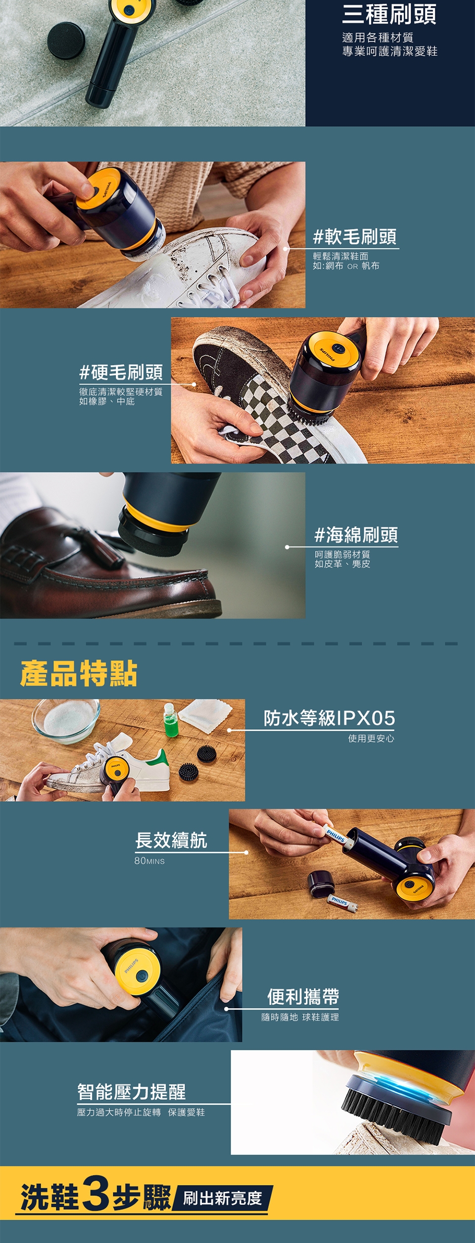 ★洗鞋前請先挑選合適的刷頭,搭配球鞋清潔劑使用★