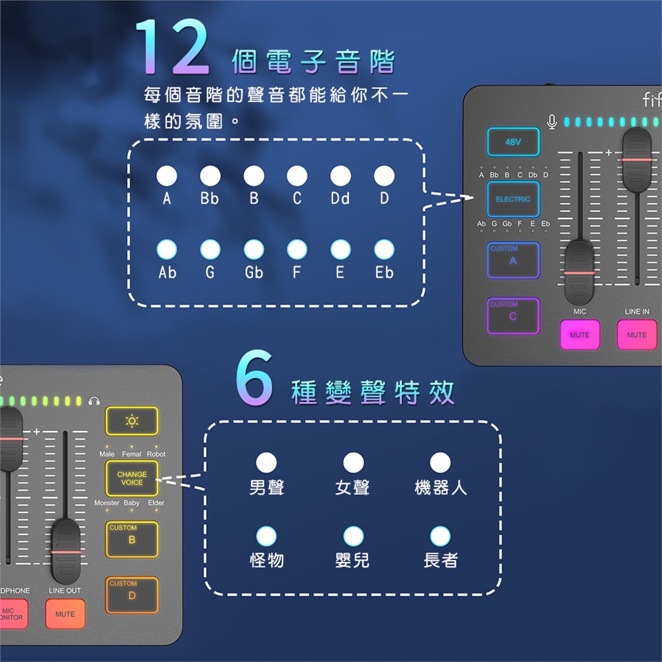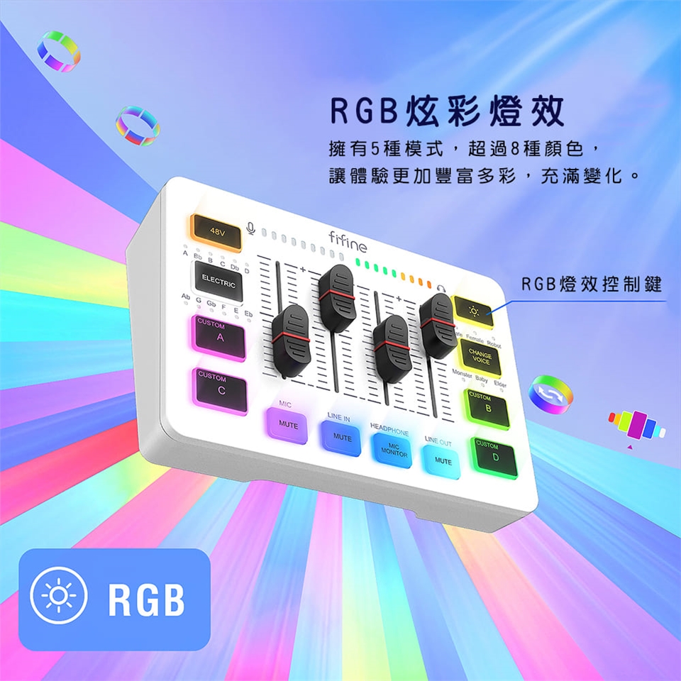 【FIFINE SC3 RGB音訊混音器USB直播聲卡(白色)】
