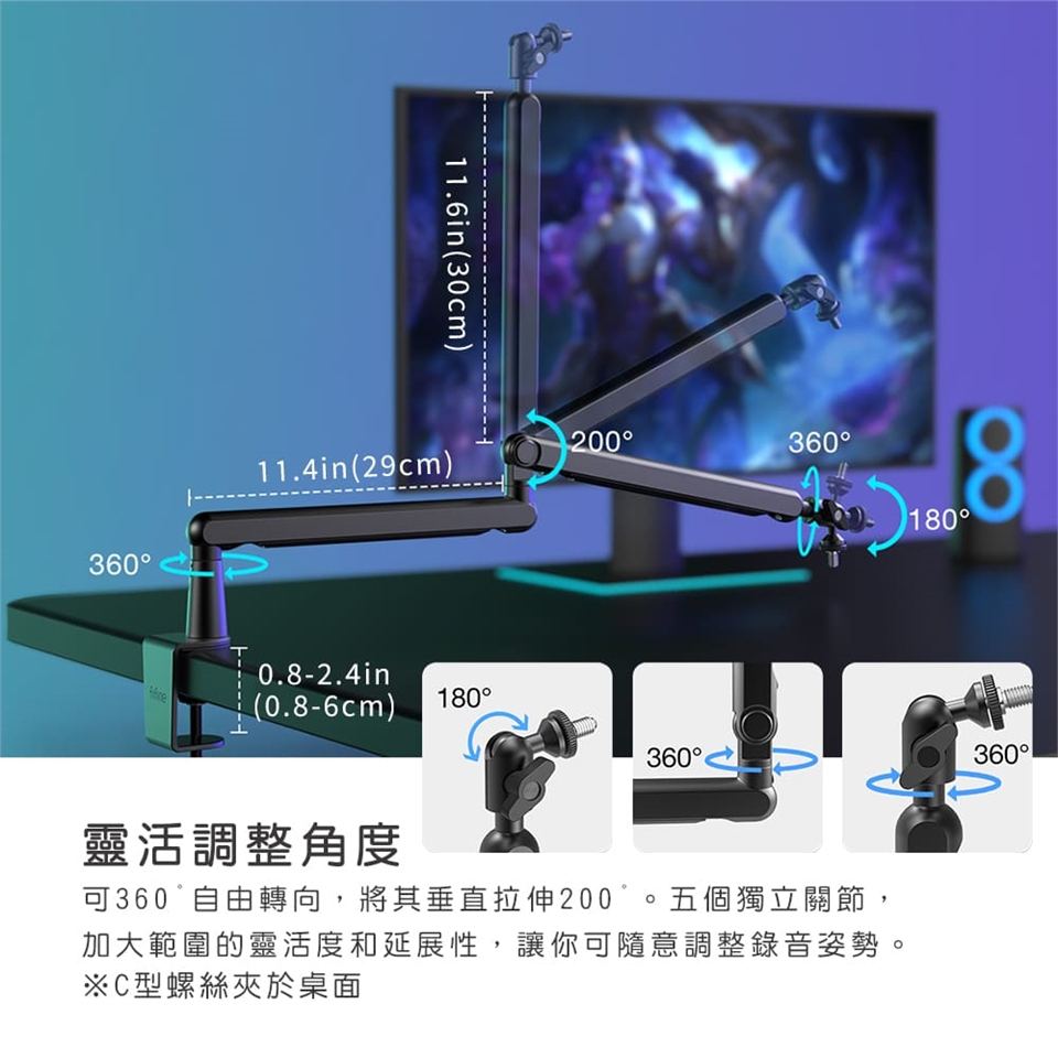 【FIFINE BM88 麥克風桌夾懸臂式支架】