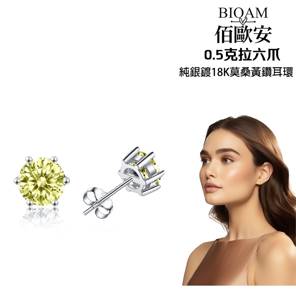 親愛的姊妹們,今天我要跟你們分享一款讓人心動的珠寶!就是【BIOAM 佰歐安】0.5克拉六爪皇冠純銀鍍18K莫桑黃鑽耳環一對入!