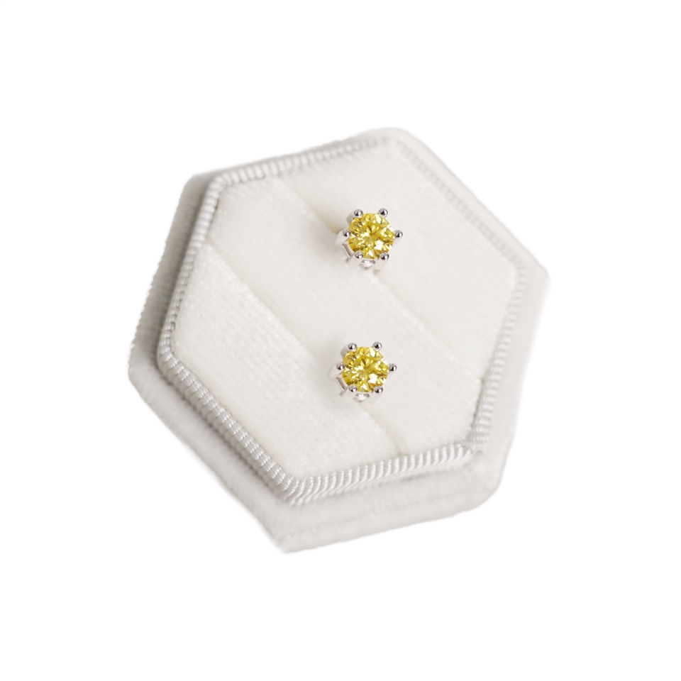 六爪圓鑽純銀鍍18K莫桑黃鑽耳環一對入