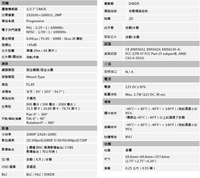 -3.6mm固定鏡頭(2.8mm,6mm可選)