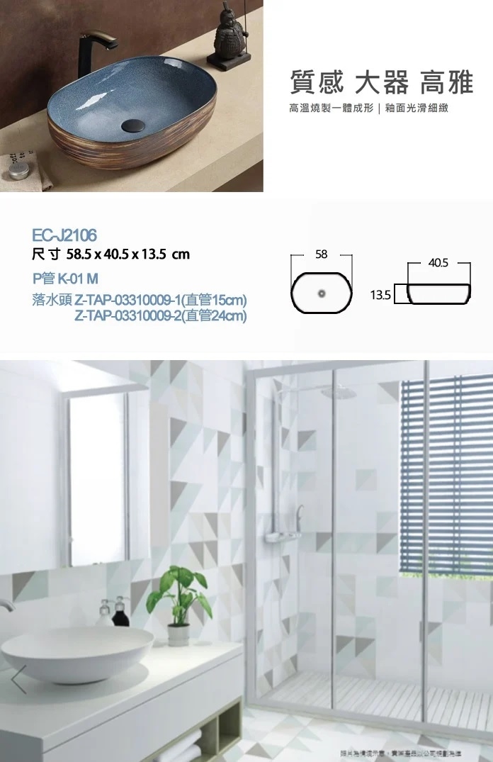 ◆ 型號:EC-J2106(藝術台上瓷盆)
