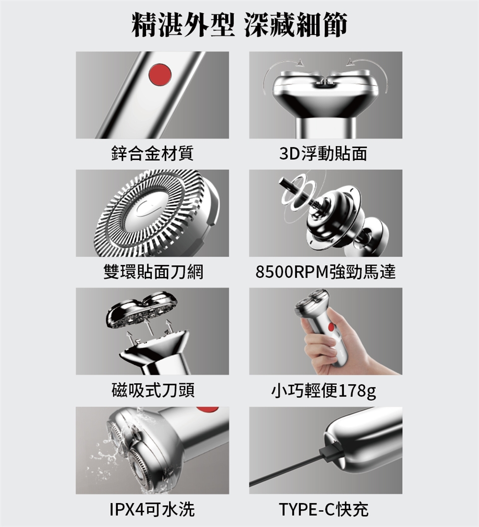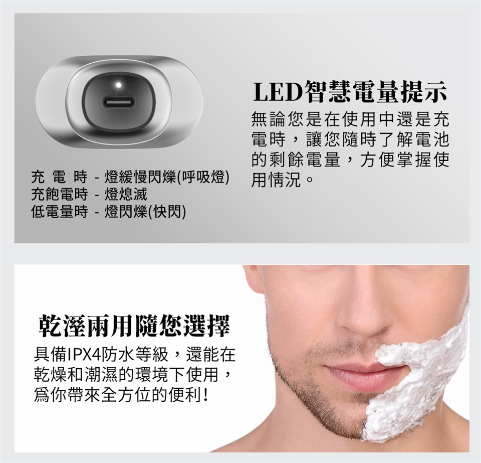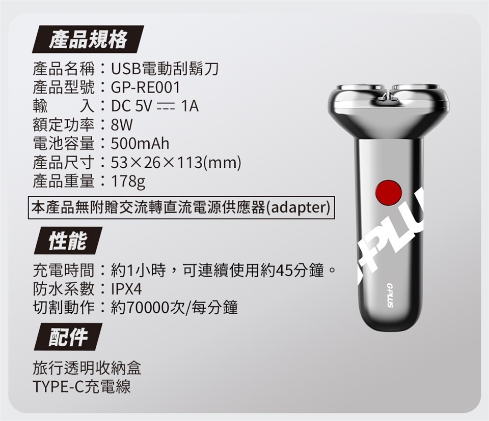 G-PLUS 拓勤 GP-RE001 USB Type-C 電動刮鬍刀+贈原廠刮鬍刀 刀頭 (2入)