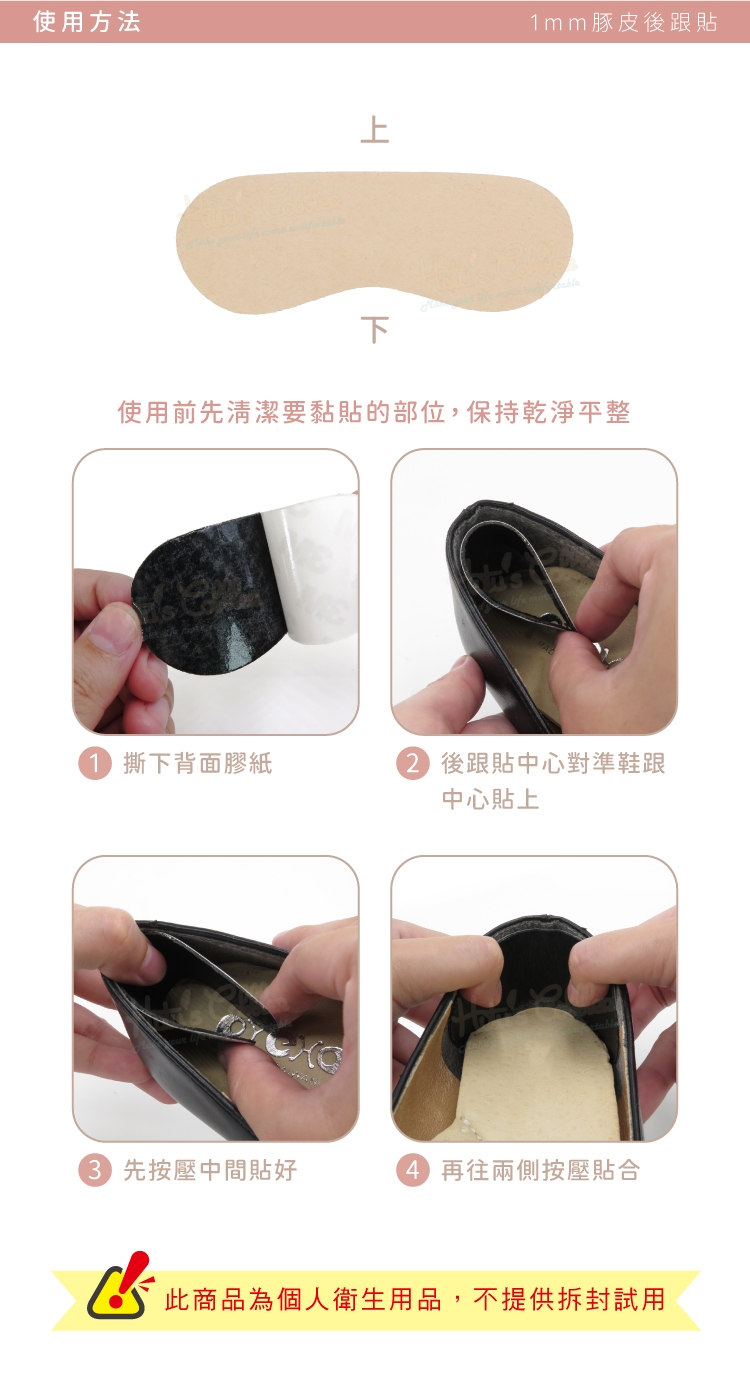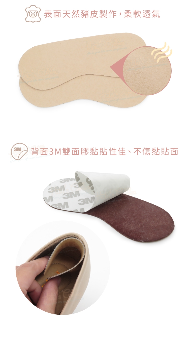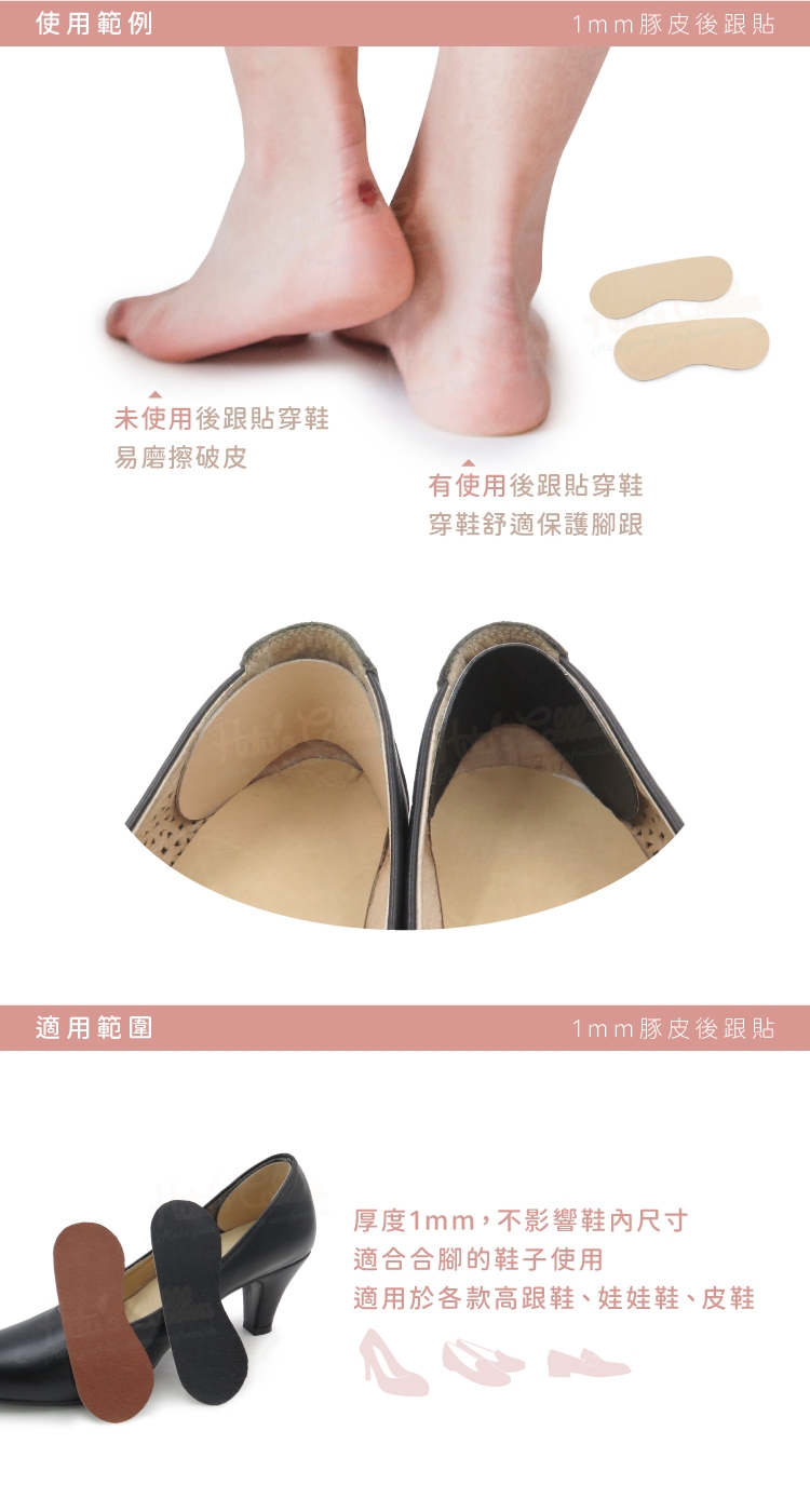 使用豚皮後跟貼,可避免腳後跟與鞋子產生磨擦