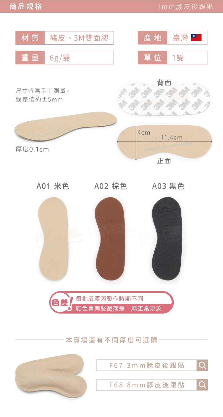 F67 3mm豚皮後跟貼