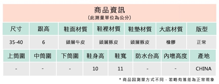 2.鞋類商品依功能及用途之不同,鞋底各有其止滑係數之個別不同,使用鞋類商品請用於正常平坦之路面,非雨鞋或雨靴類商品,請避免穿著於下雨濕滑路面上行走。