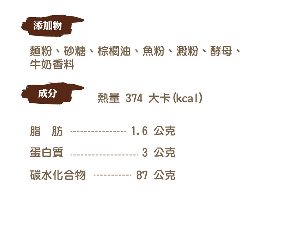 (本產品含有魚類、牛奶,不適合對其過敏體質者食用)