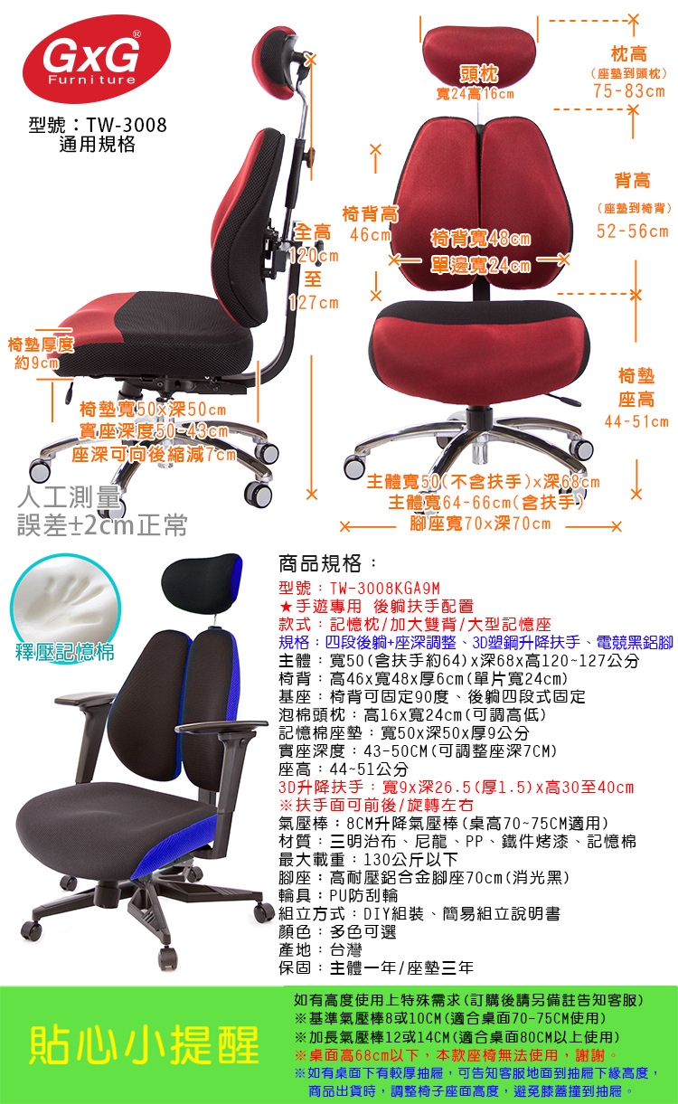 TW-3008高背款雙背椅,本款使用名床等級釋壓記憶泡棉,適合身高155~190CM使用者,椅背採用人體工學設計,造型看似烏魚子、或是像兩個人體肺的型狀,這樣的設計,是讓我們在乘坐後靠時,能更貼合我們背部,緩和脊椎的重力,降低尾椎壓力,給長時間工作者一張,聰明、會改善坐姿習慣的智慧椅。