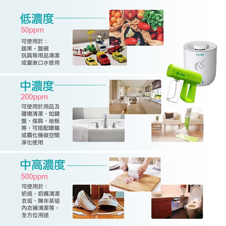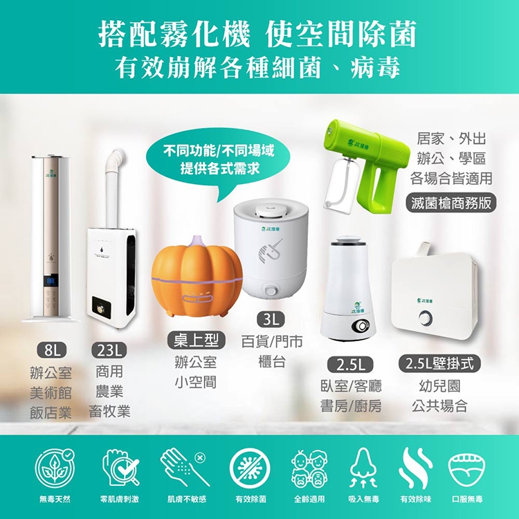 推薦搭配次氯酸水使用,可達到空間清潔的效果