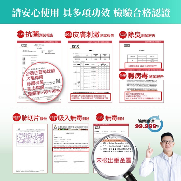 清潔效果經過多國檢驗合格,通過SGS認證!