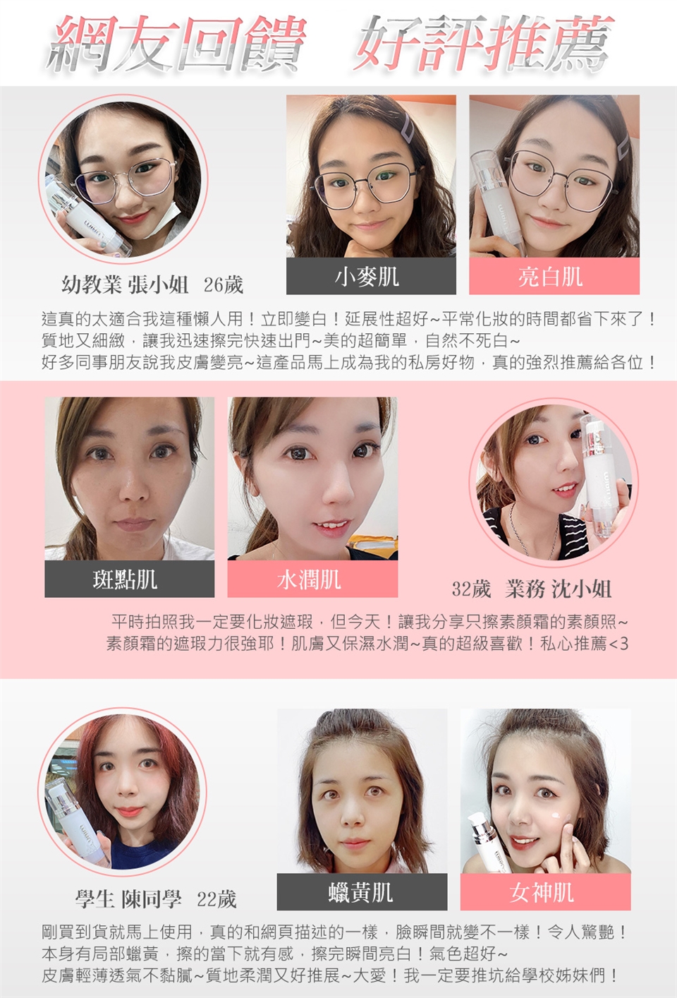 3.敏感性肌膚請先做好肌膚測試,確認沒有過敏反應後即可使用。