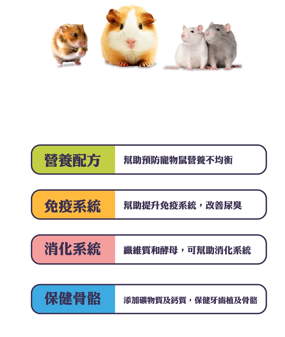 適用對象 : 倉鼠、沙鼠、全鼠類,全齡鼠。