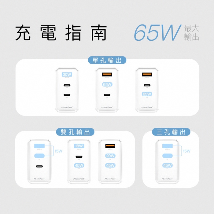 > Type-C(C1):DC 5V;3A / 9V;3A / 12V;3A / 15V;3A / 20V;3.25A (65W max)