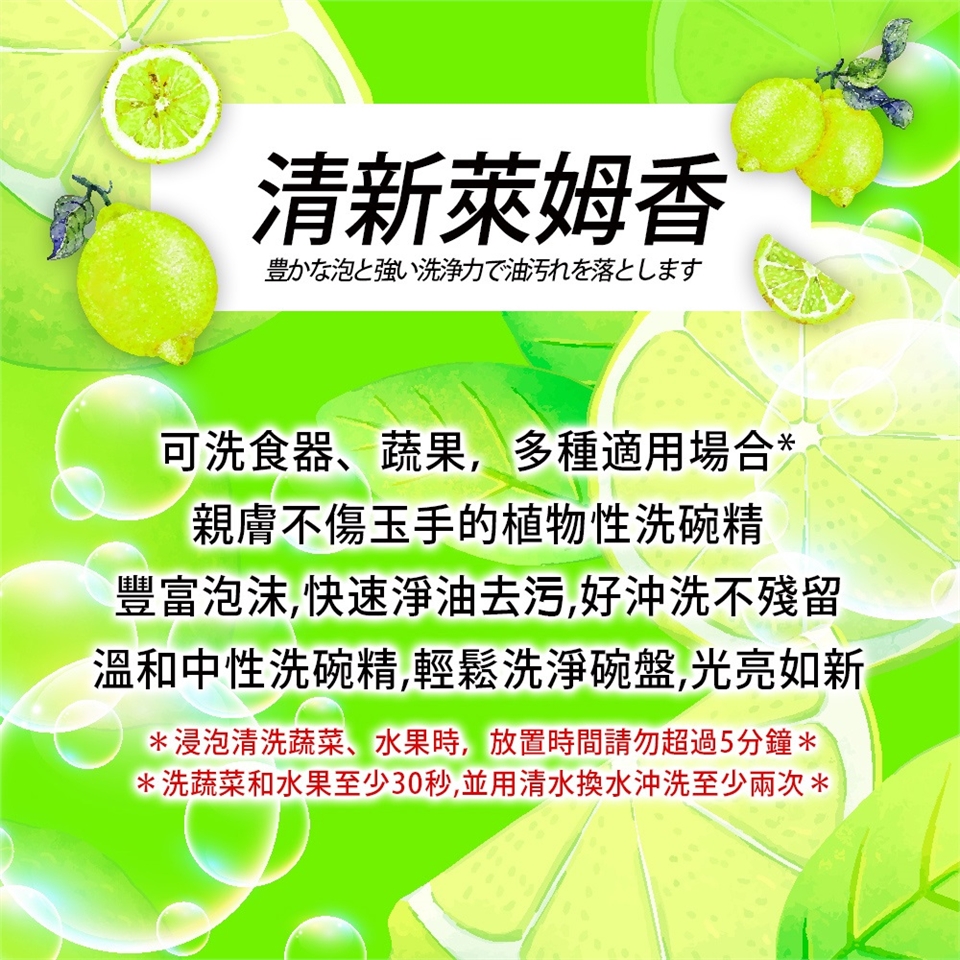 - 豐富泡沫,快速淨油去污,好沖洗不殘留