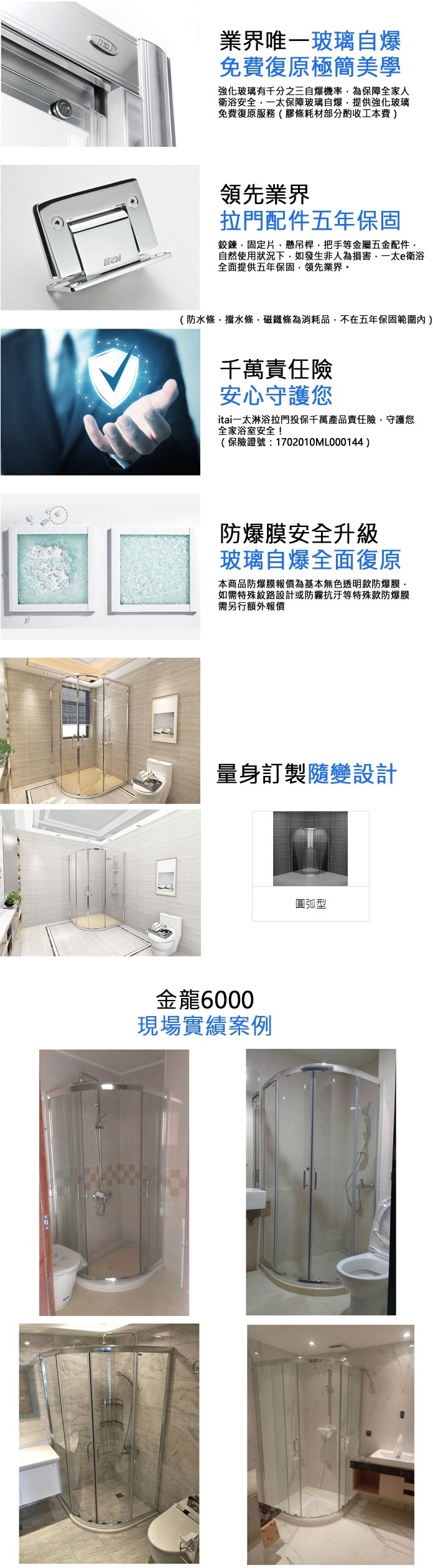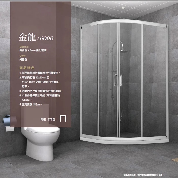 ◆ 型式:圓弧型淋浴門-金龍6000 / 強化玻璃-6mm X1入