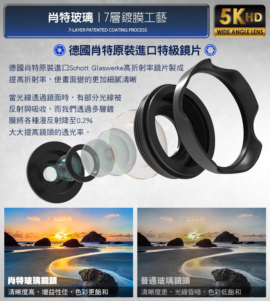 ●7層鍍膜工藝,讓鏡頭擁有5K HD高清成像