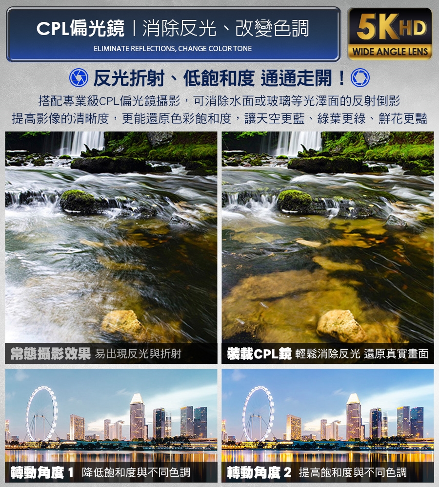 多層鍍膜處理防刮又防水,專業鏡片優異表現畫面不畸形
