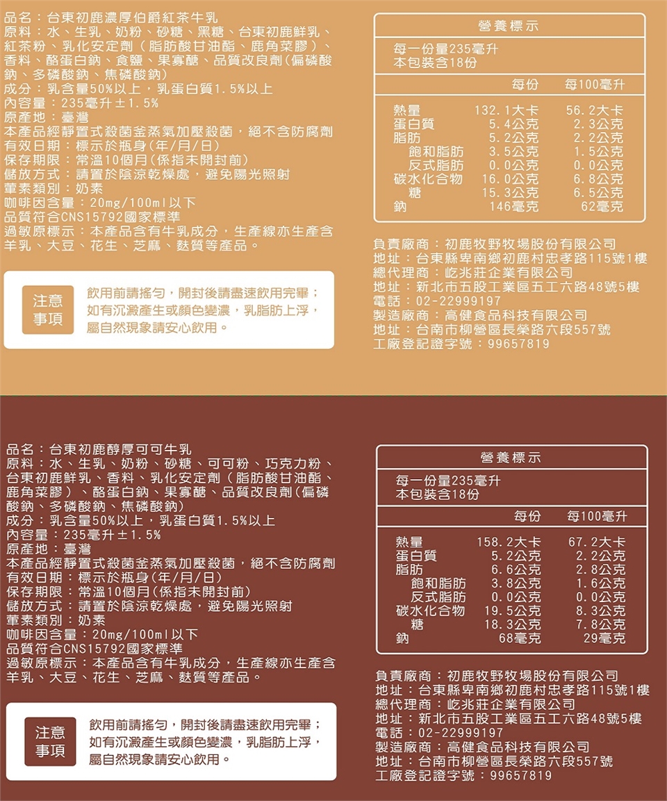 商品詳細介紹 體驗說明 不可體驗 使用方法說明 飲用前請先搖勻,開封後請儘速食用完畢,如有沉澱產生或顏色變濃,乳脂肪上浮屬自然現象,請安心食用。 注意事項 飲用前請先搖勻,開封後請儘速食用完畢,如有沉澱產生或顏色變濃,乳脂肪上浮屬自然現象,請安心食用。