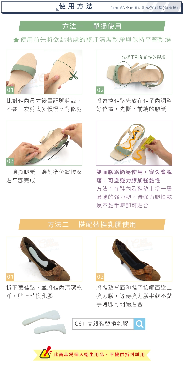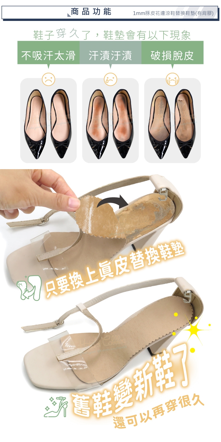 1mm豚皮花邊替換鞋墊(有背膠)功能: