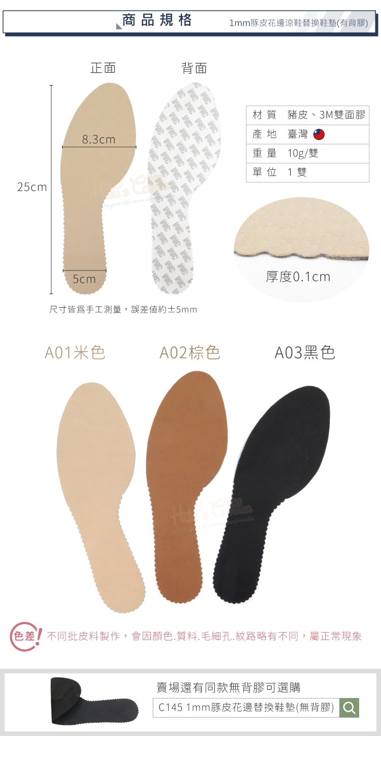 1mm豚皮花邊替換鞋墊(有背膠)細節: