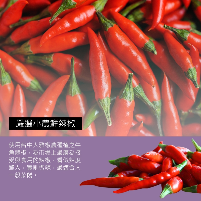【本商品使用新鮮辣椒,無使用乾辣椒或辣椒粉。】