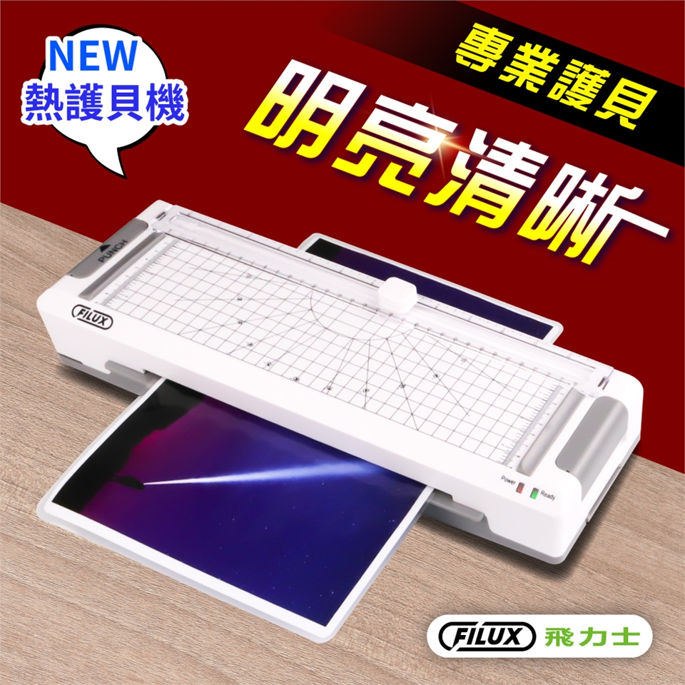6合1高效裁切護貝機 + 20張高清明亮護貝膜 + 省力釘書機