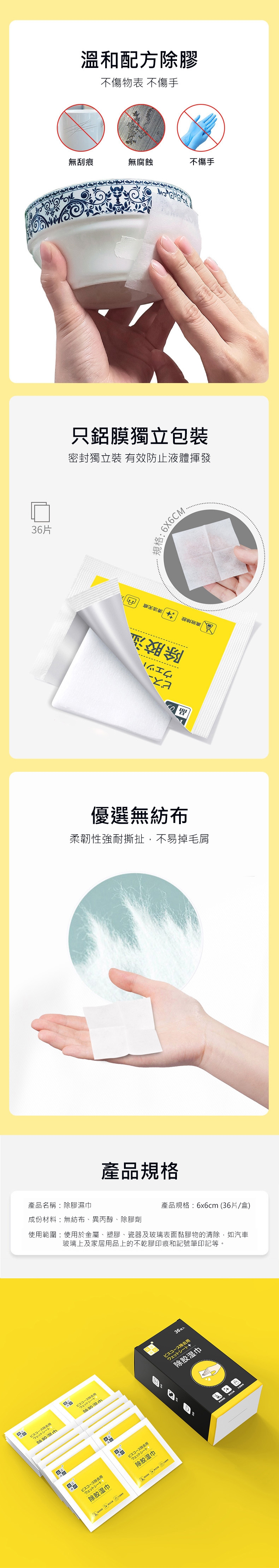 產品名稱:除膠濕巾