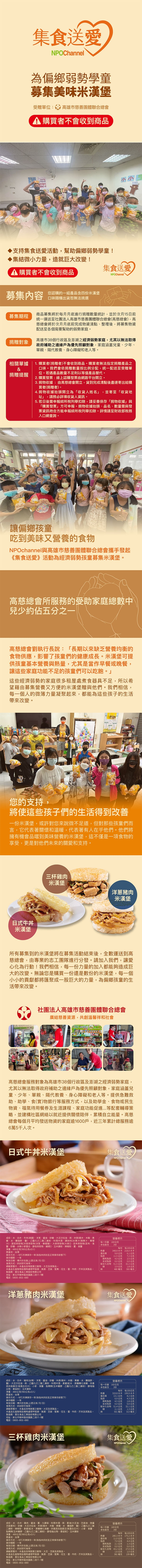 品名:《NPOchannel x高慈總會》集食送愛-米漢堡募集 (購買者不會收到商品)
