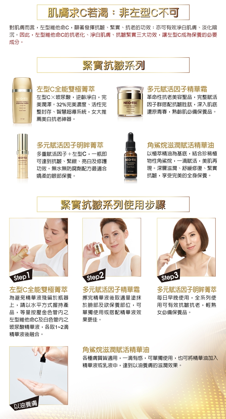 適用膚質:全膚質適用,特別適用於熟齡及老化膚質。