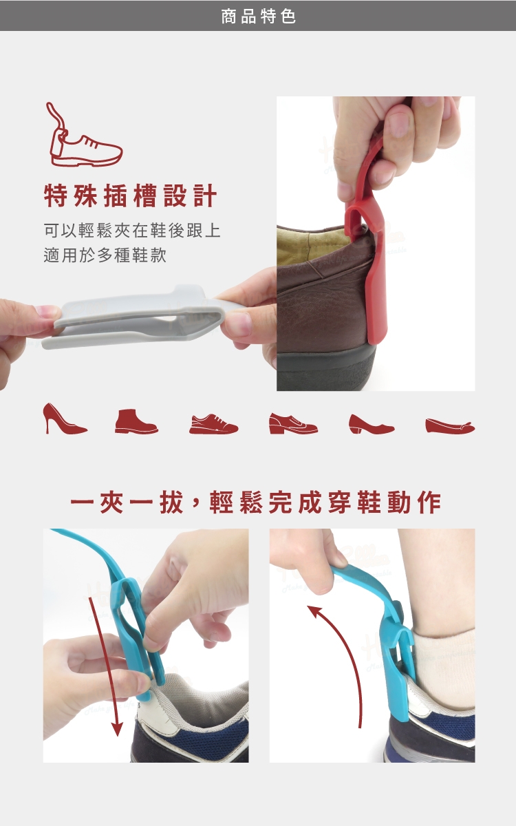 可適應多種鞋型,一插一拔,輕鬆穿鞋