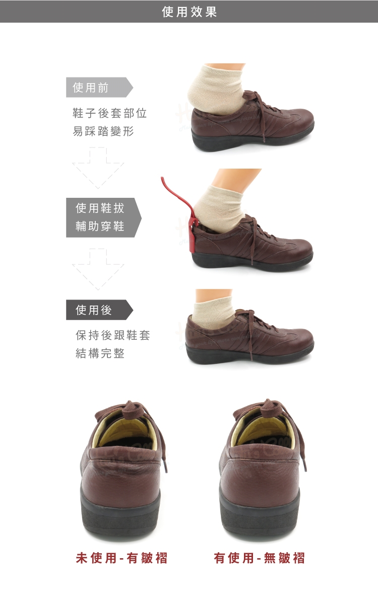使用懶人穿鞋鞋拔可避免擠壓鞋後跟,保持完美鞋型