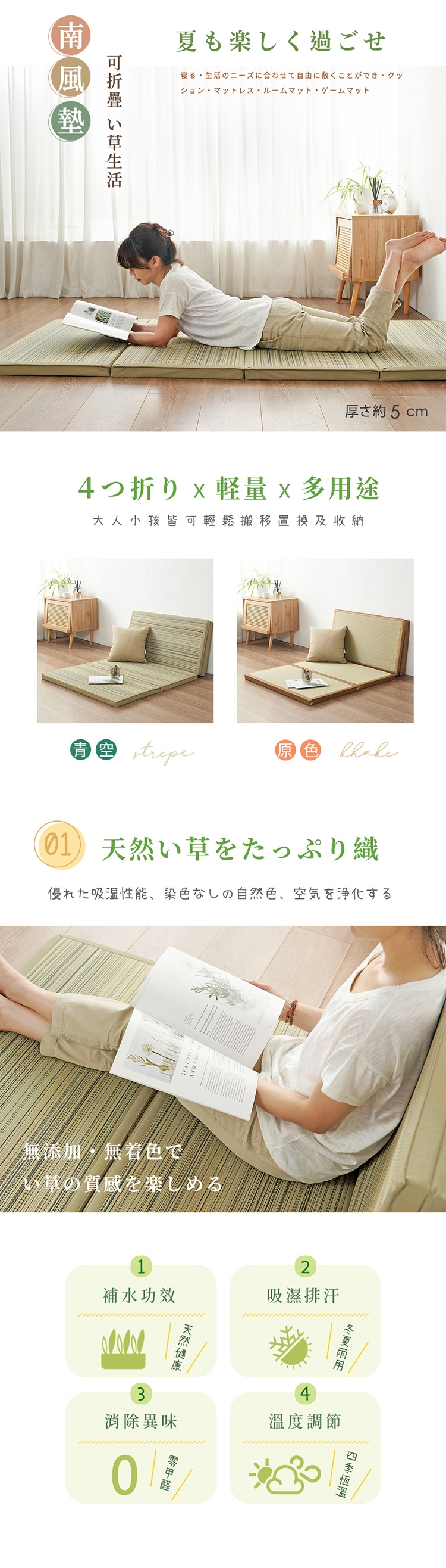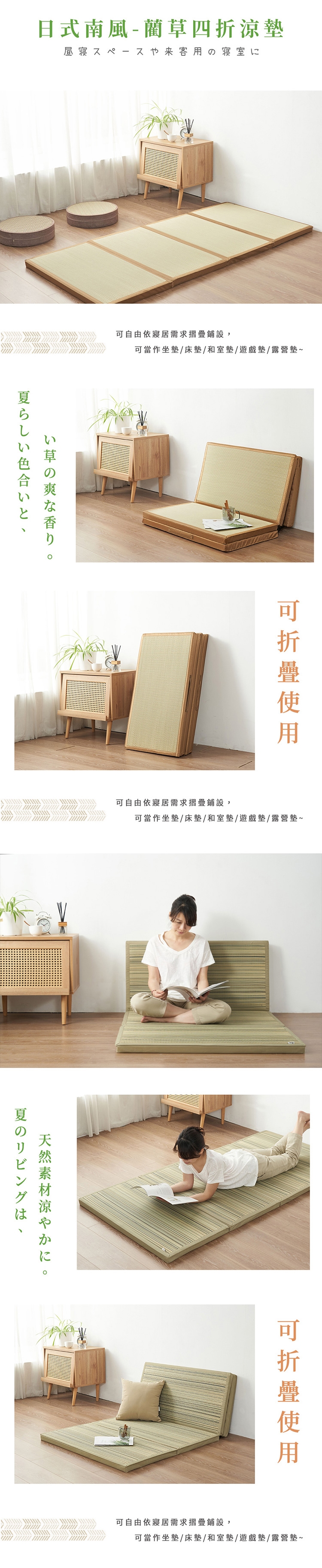 涼蓆 / 日式南風-四折墊 【天然藺草可折疊透氣床墊】 ( 原色 90x200cm ) 榻榻米 / 和室墊 / 客廳墊 / 露營可用